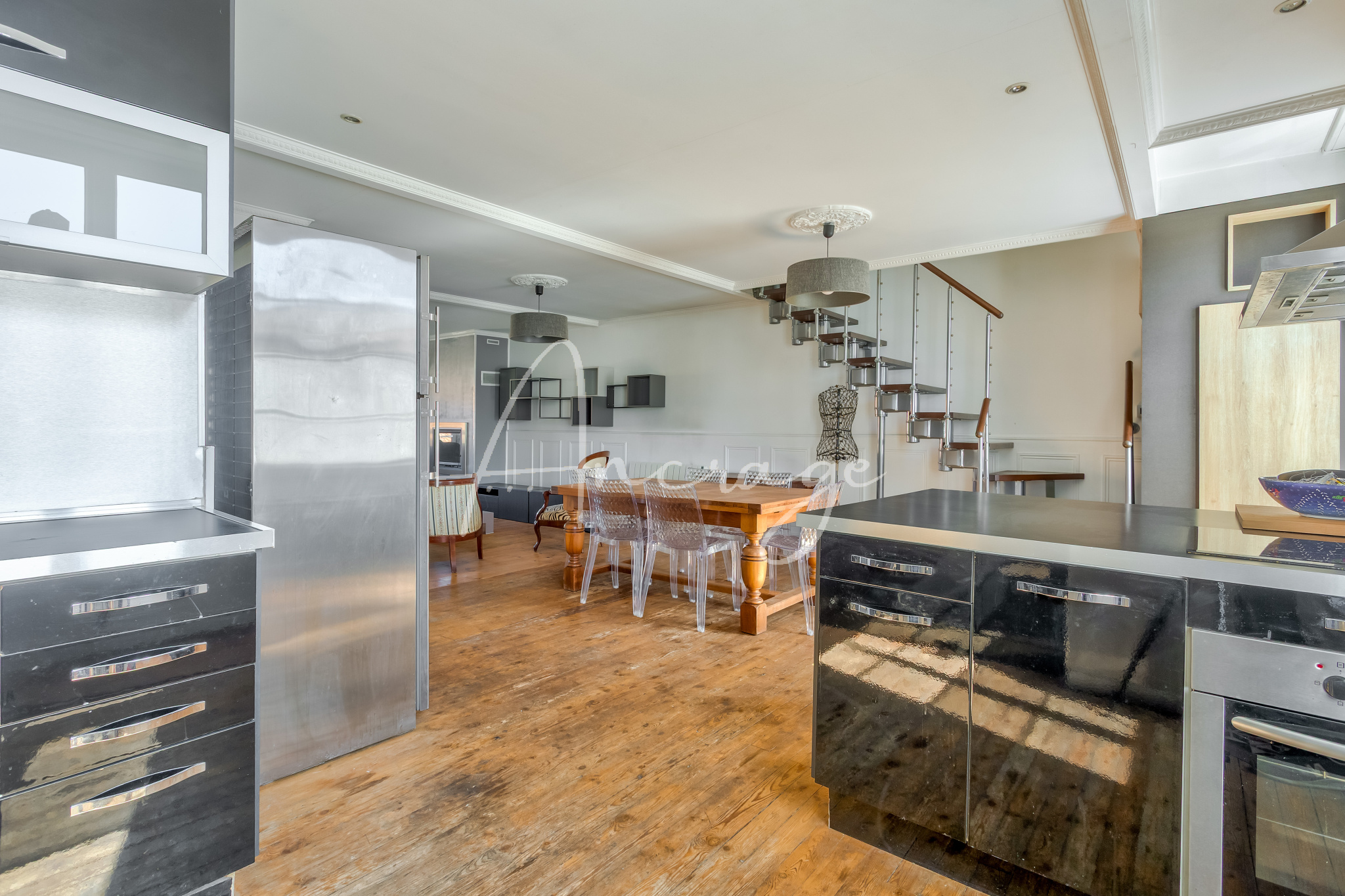 Avec son entrée indépendante sur rue, cet appartement se vit comme une maison de ville et propose au 1er étage, une vaste pièce de vie traversante de plus de 50m² avec une cuisine ouverte, un cellier, une buanderie, des wc séparés, une salle de bain et une chambre.