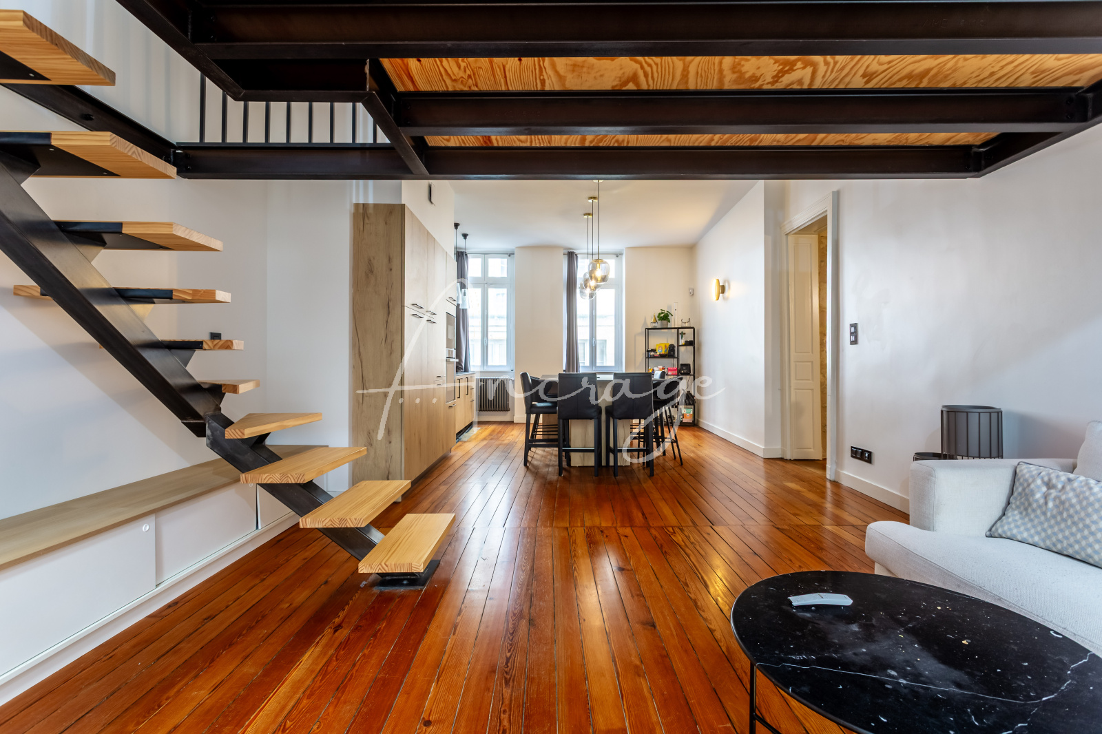 Bordeaux (33000)À deux pas du Grand Théâtre de Bordeaux, au sein d’un immeuble parfaitement entretenu avec ascenseur, découvrez cet appartement familial en duplex de 117m² carrez.