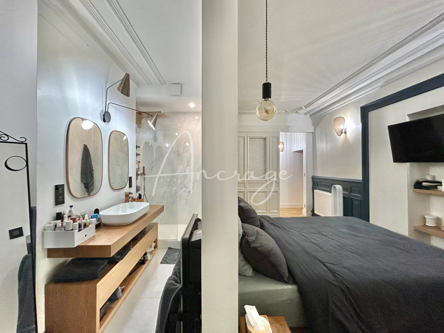 Cet appartement séduit par ses beaux volumes et sa belle hauteur sous plafond.